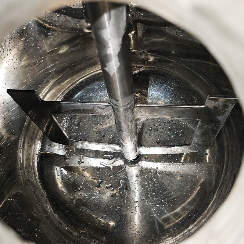 物料在罐内通过加热、搅拌进行混合反应,由于罐内处于真空状态,物料在搅拌过程中产生的气泡被及时抽走。采用抽真空的方式,使所生产的制品在搅拌过程中不再混入气泡,从而保证可制造出富有光泽、细腻及延展性良好的优质产品。